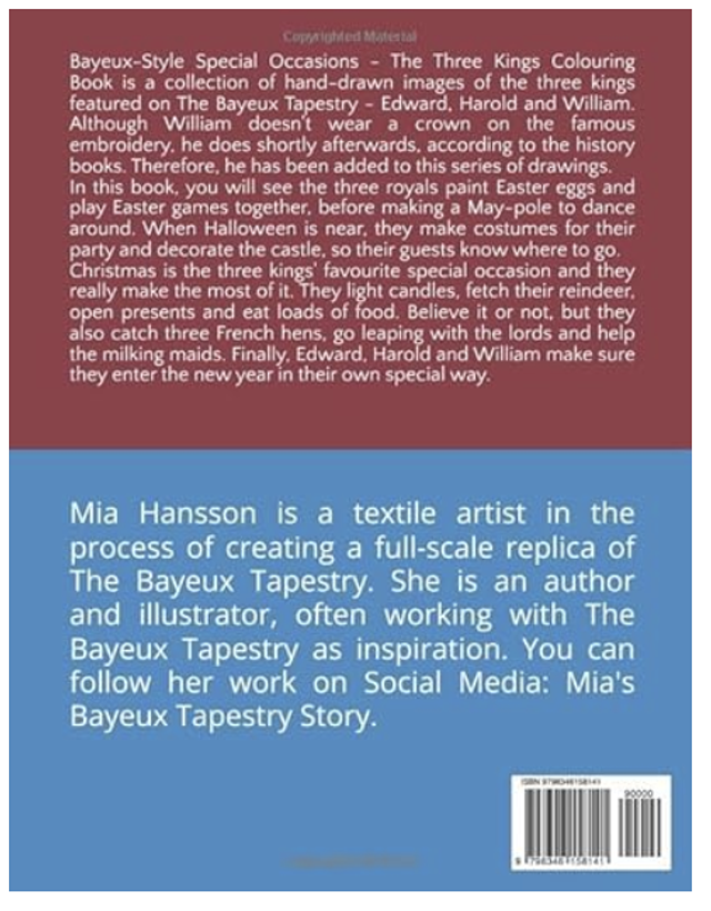 Bayeux-Style Special Occasions, The Three Kings Colouring Book is a craft & colouring book with 52 images, inspired by The Bayeux Tapestry. It is the second book featuring the three kings, Edward, Harold and William. Each chapter starts with a short tale about these royals, guiding you through their adventures.
